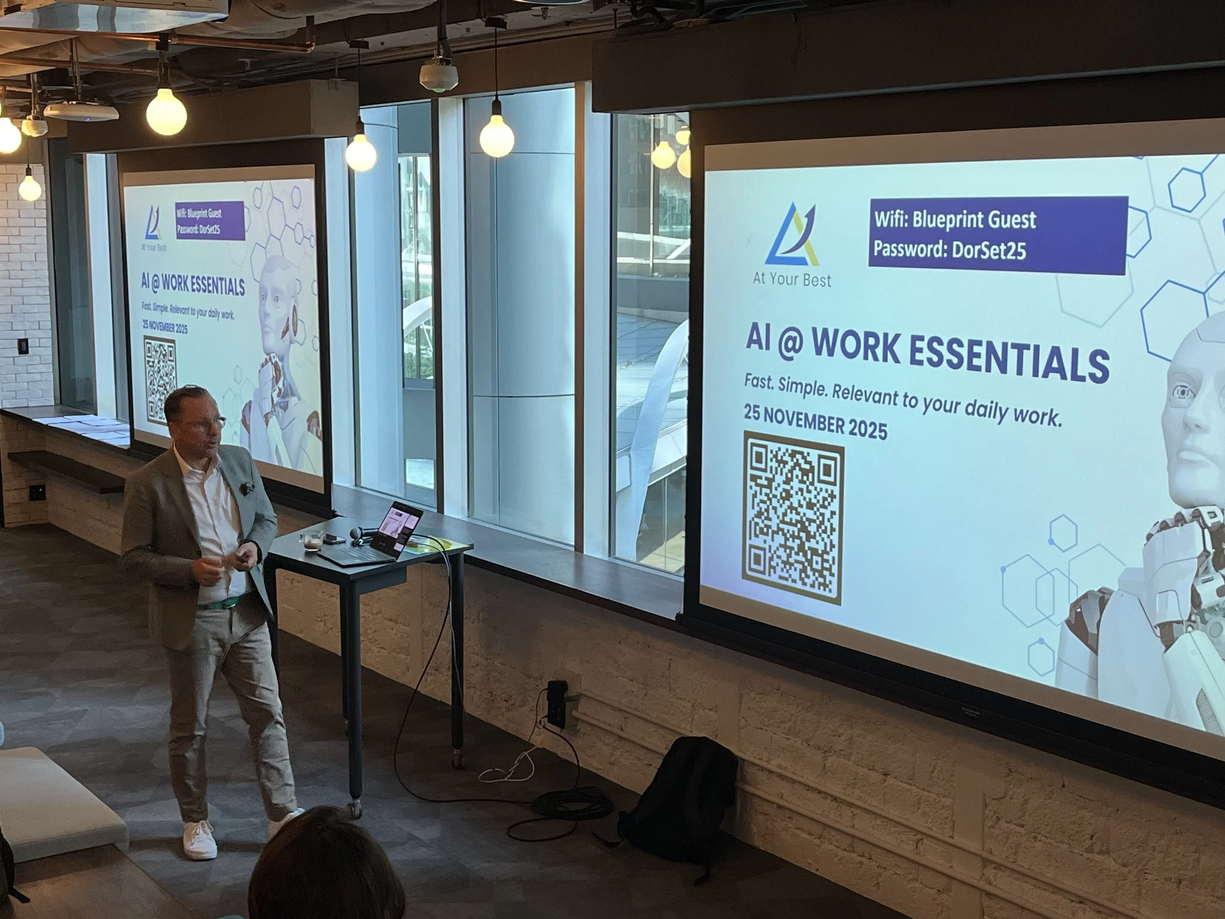 Salle comble pour l’Atelier Job Search, le mardi 25 novembre, dans le cadre idéal de Blueprint à Quarry Bay. L’intelligence artificielle au travail, niveau 1 : une formation pédagogique et efficace.