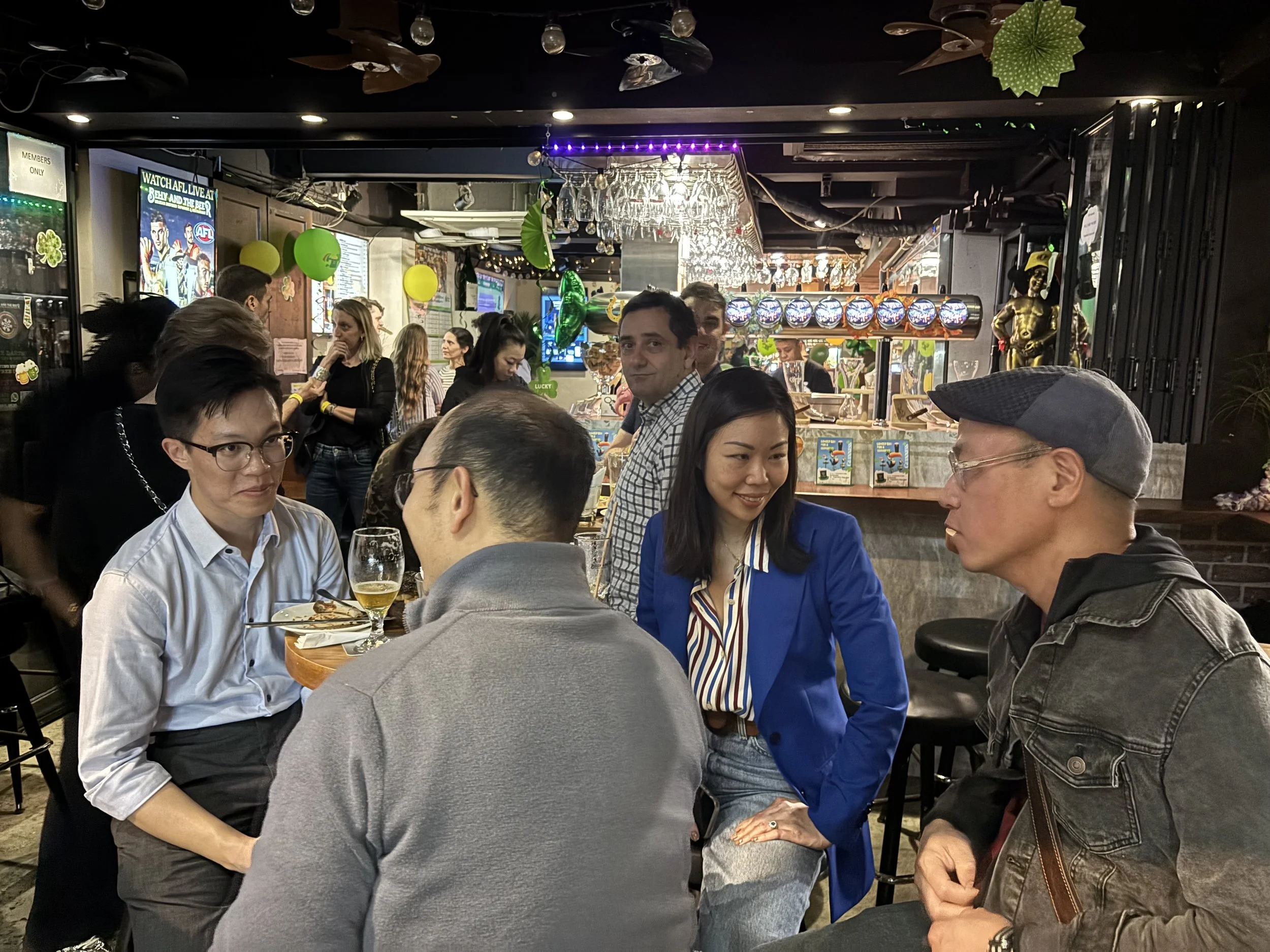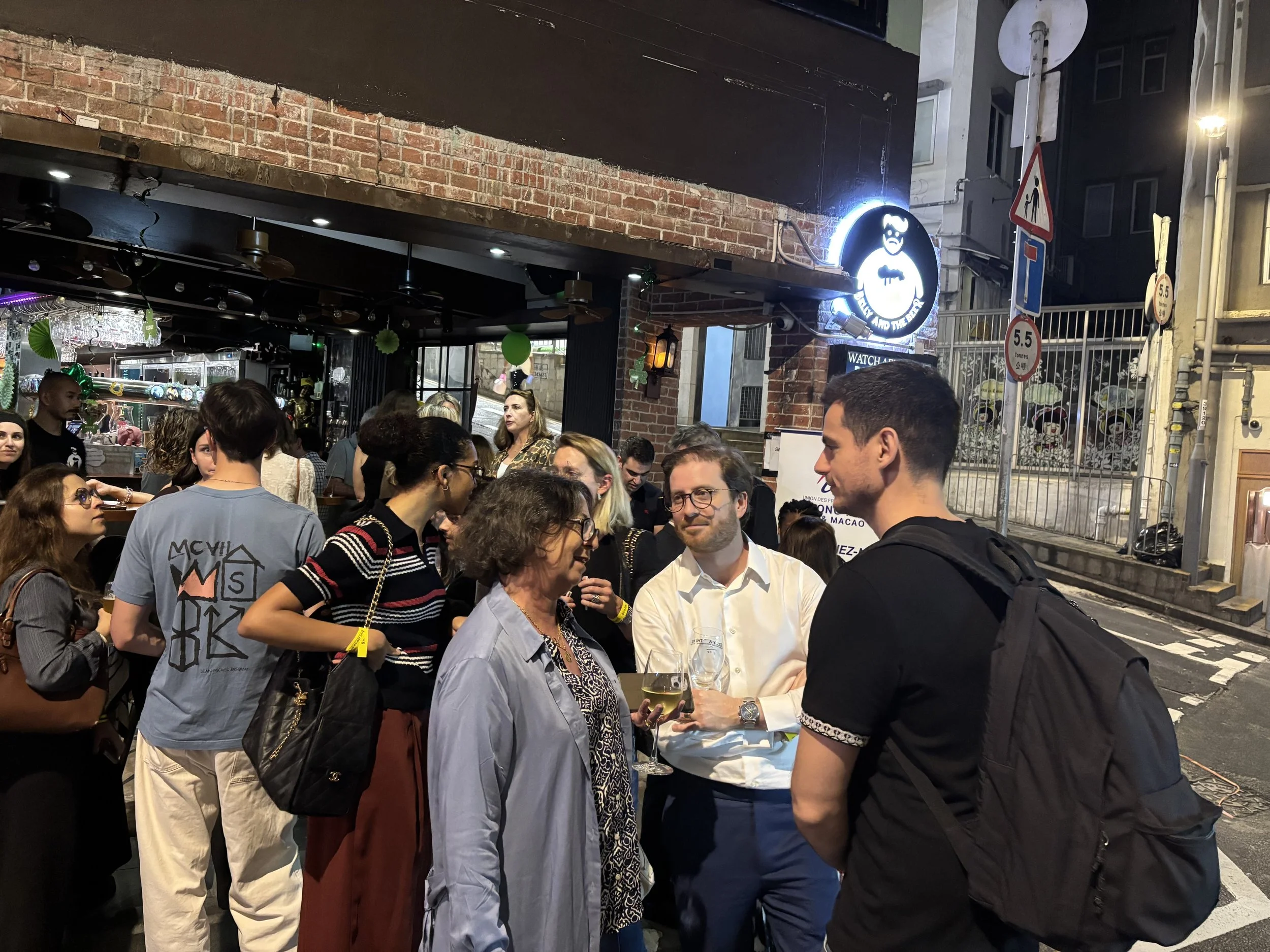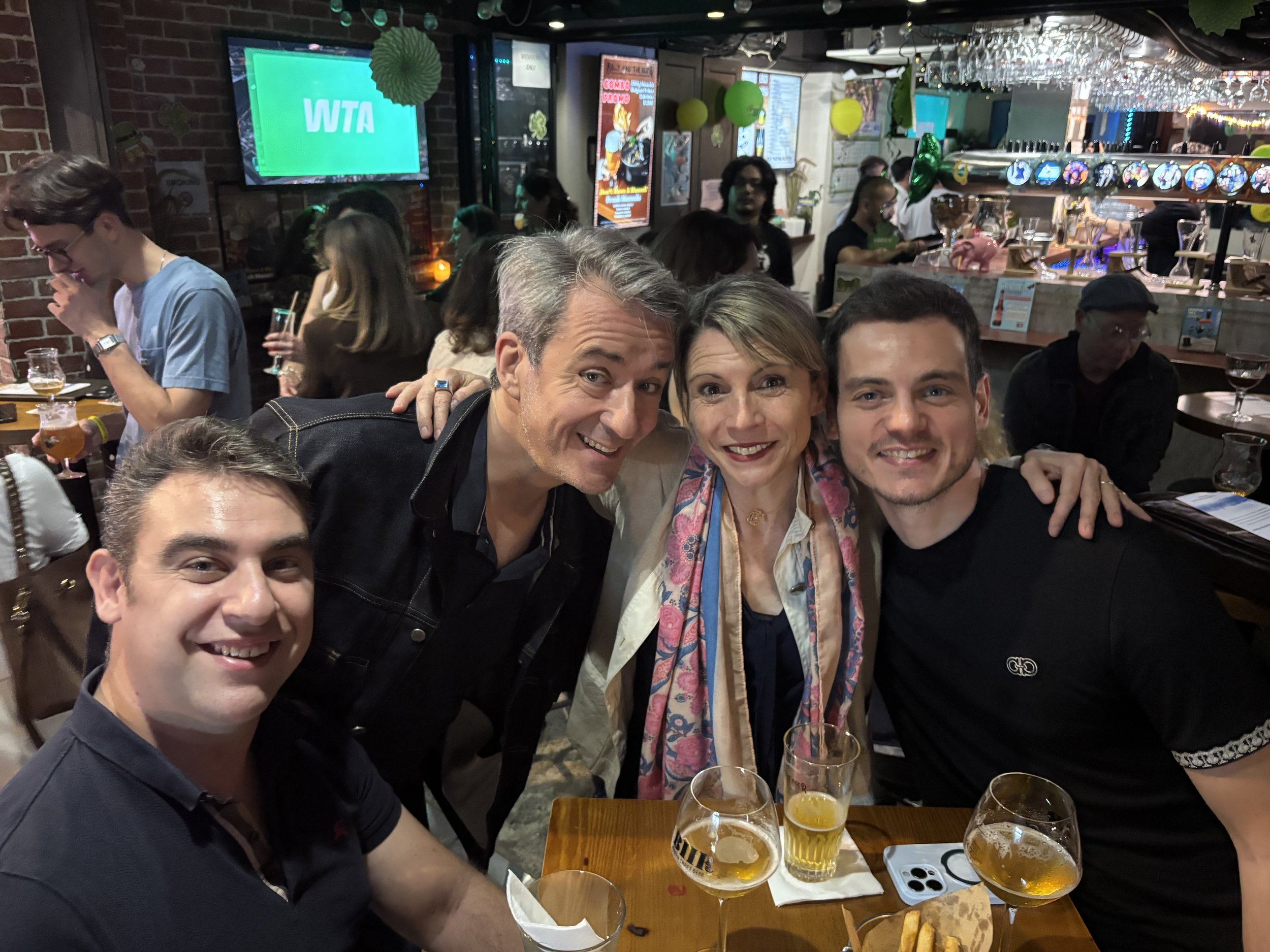 Un temps délicieux, un cadre idéal pour échanger, et quelques bières pour se détendre. Nous tombons tous d’accord : c’est une parenthèse enchantée. Certains sortent du bureau, d’autres, venus de Shanghaï, sont heureux de croiser des Francophones pour l’apéritif.