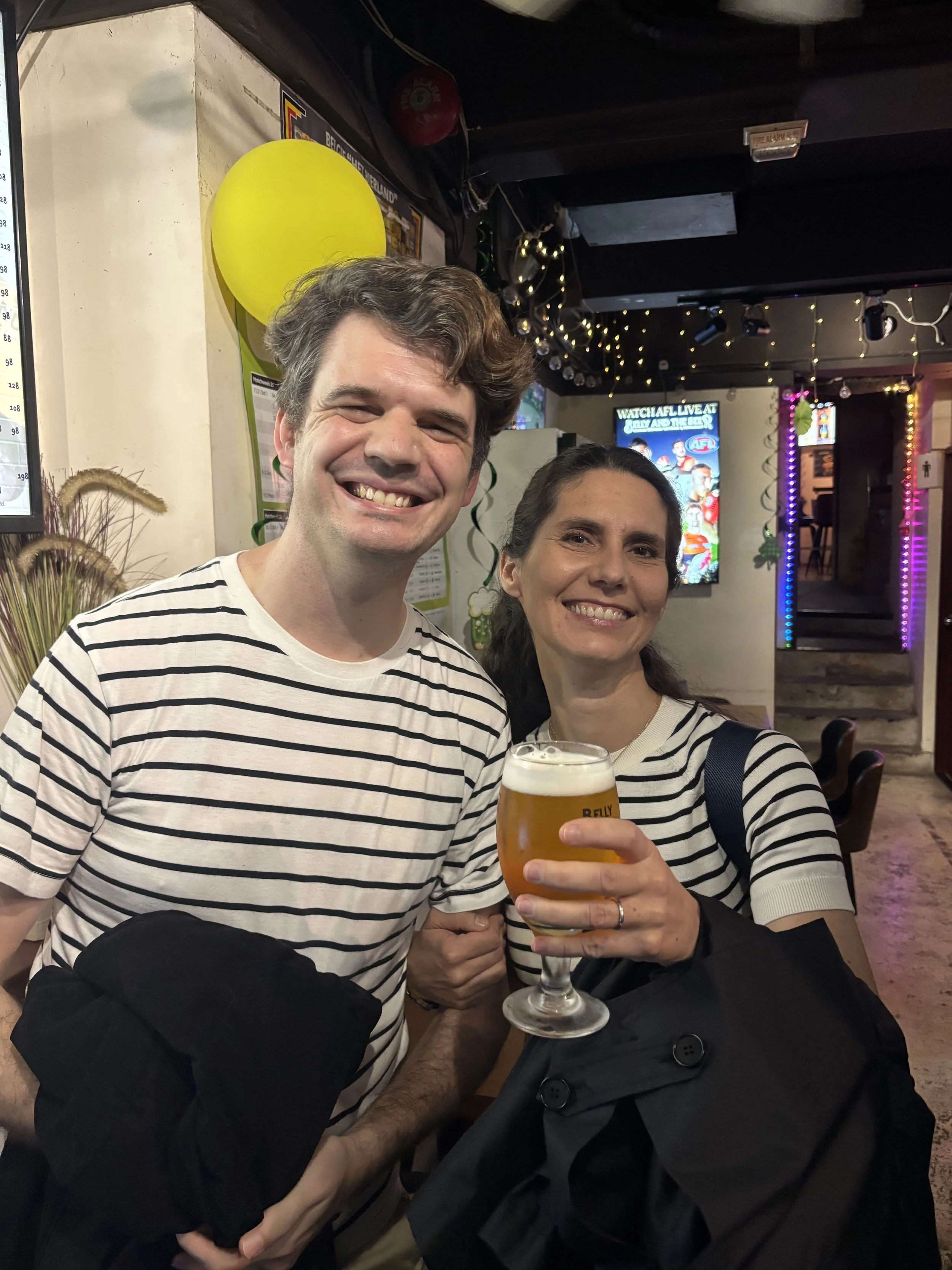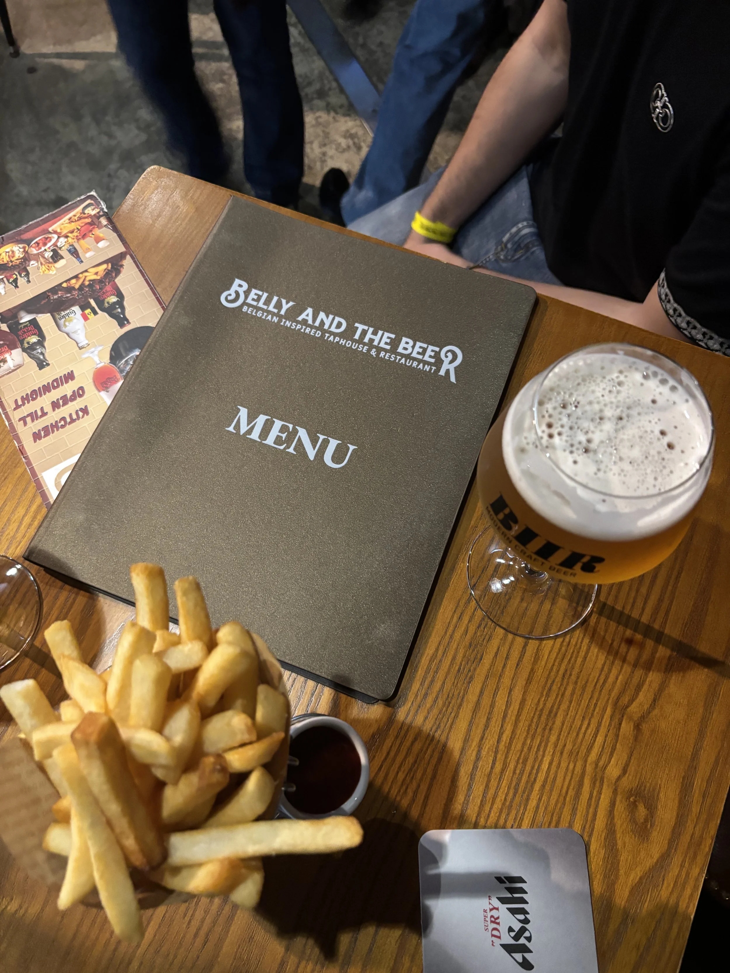 Nicolas, responsable du Cercle Sport et Bien-être, avait déjà organisé des événements au Belly and The Beer. Des matches de rugby ou de football à regarder en groupe pour soutenir les Bleus. Le bar-restaurant, situé à un croisement de rues calmes de Soho, est parfait. Il était logique, alors que l’on vient de célébrer la Francophonie, de se rassembler dans cet établissement… Belge !