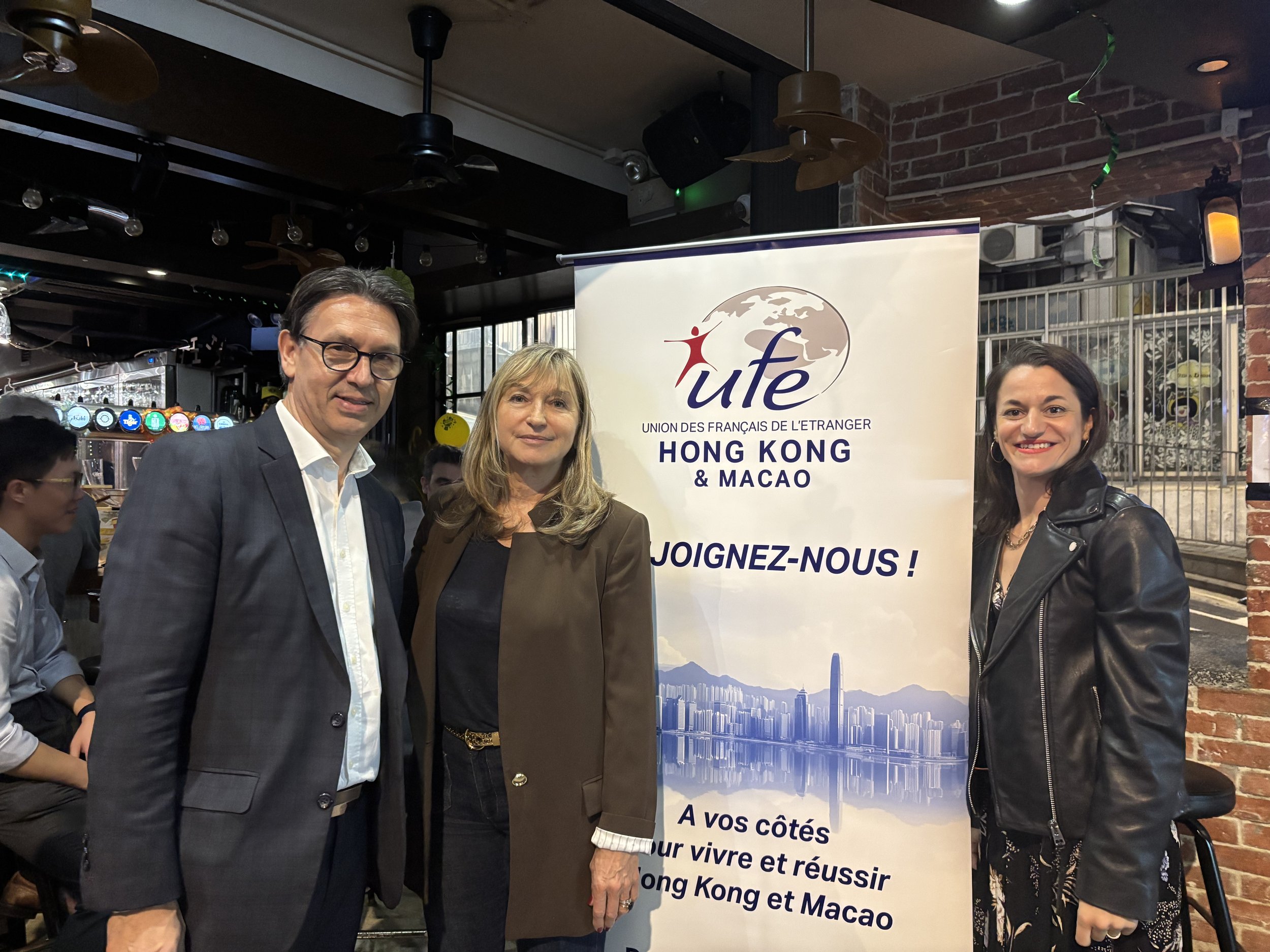 Les verres s’entrechoquent, les cartes de visite s’échangent. On parle business, motricité des bébés, prix des billets d’avion pour rentrer en France cet été, ou encore entraînement pour un futur marathon.