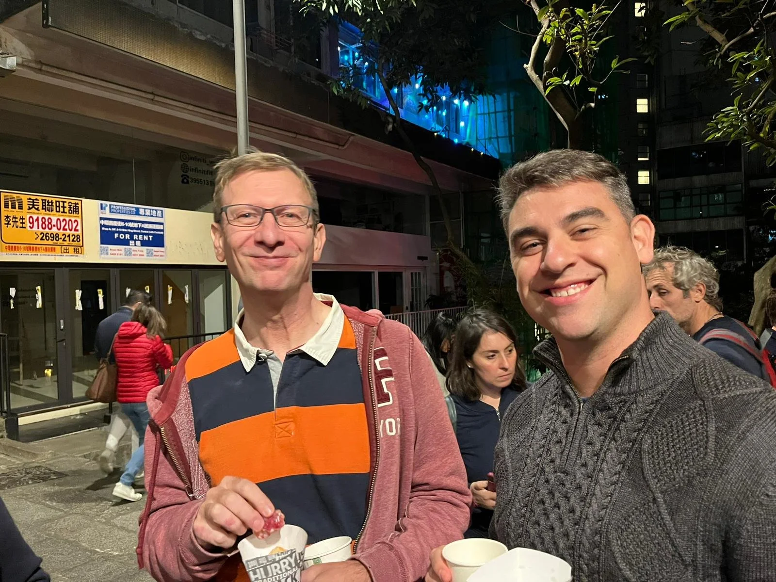 L’ami Didier Pujol, patron du Petit Journal Grande Chine, fidèle au poste, cultive ses connexions à Hong Kong. La Cabane affiche complet. Les convives jouent des coudes et se réjouissent de cet événement annuel qui soude notre communauté.