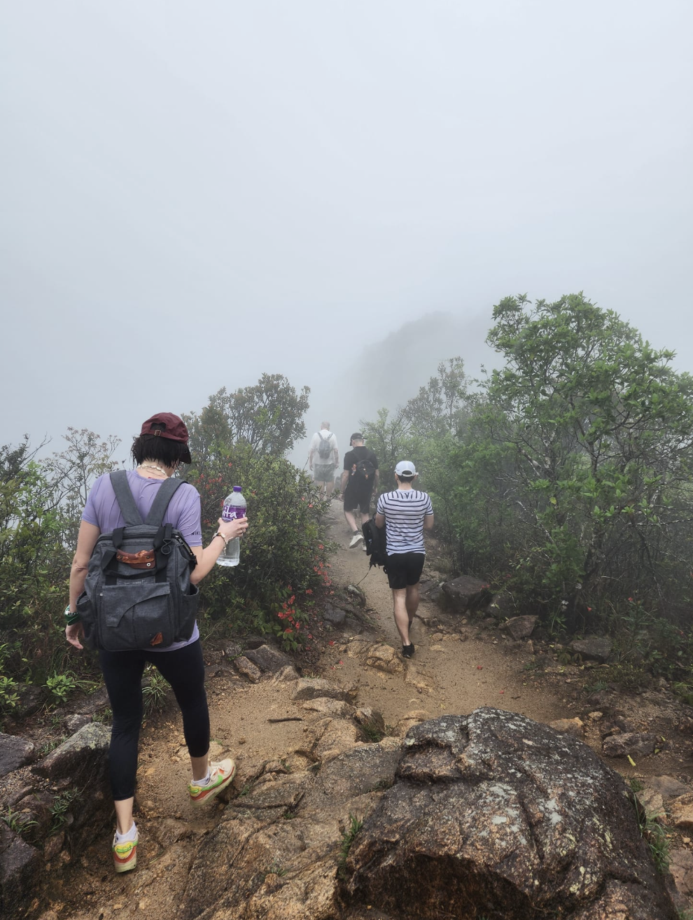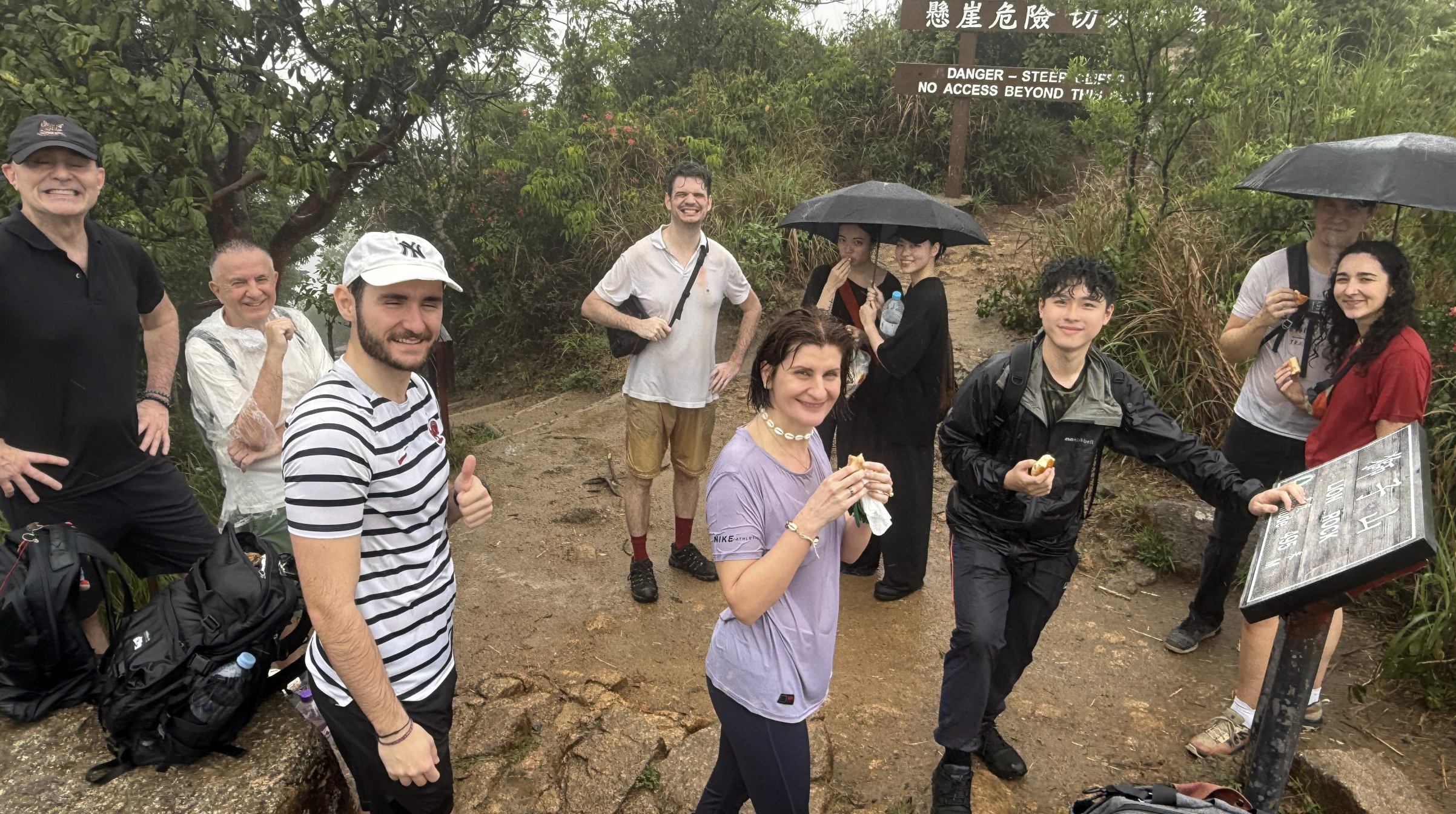 Daniel, qui vit depuis plusieurs décennies à Hong Kong, était équipé de son poncho. D’autres, des locaux francophones, avaient pensé au parapluie. Mais en dépit de vêtements trempés, nos 12 randonneurs avaient le moral au plus haut. Les 450 mètres de dénivelé ne les ont pas freinés. Sur le chemin du retour, le ciel s’est ouvert, et les vêtements ont commencé à sécher. La fin d’une belle aventure fut célébrée dans un café à Lok Fu.